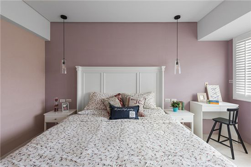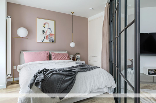 只单刷一面墙的话,也很漂亮,但一定要记得灰色得多,粉色呢,一点点就好了。