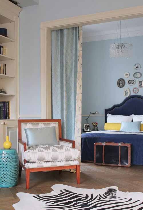 这个居室的设计将现代与经典格调混搭的十分巧妙。图案、细节、材质,尤其是色彩,丰富了设计质感。