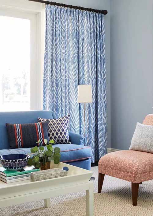 搭配代尔夫特蓝波纹窗帘、沙发与南瓜色动物纹沙发椅,饱满醇厚的色调配比装饰出一份时尚悦动的独特气质,让你沉浸于优雅而轻盈的生活中。